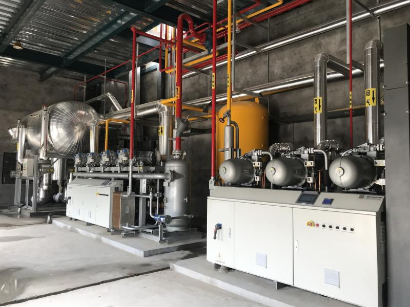 ※ 壓縮機(jī)、儲液器、氣液分離器、油分離器、中間冷卻器、回氣集管、供液總管、電控設(shè)備全部集中在一起,在保證足夠的操作空間后盡量縮小設(shè)備占用空間,充分節(jié)約機(jī)房面積。